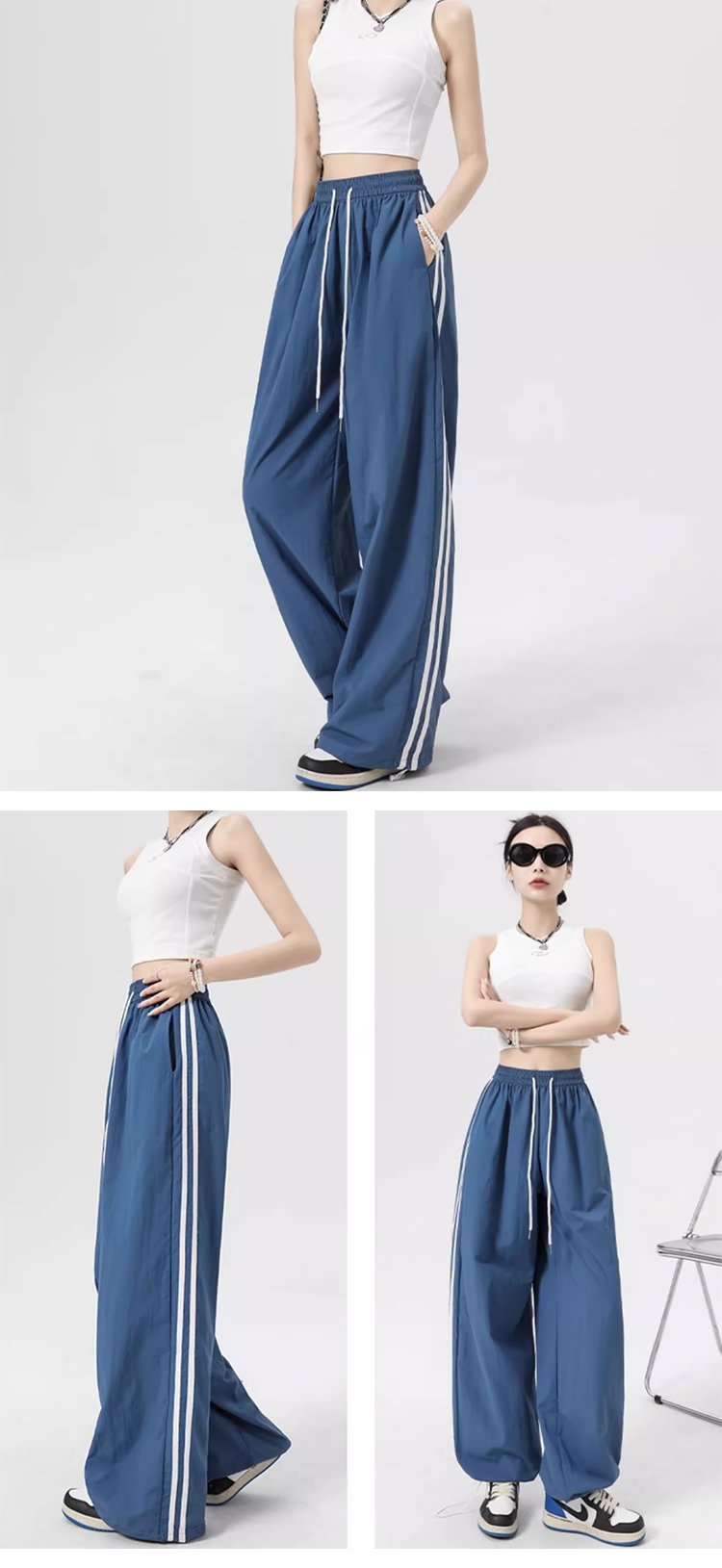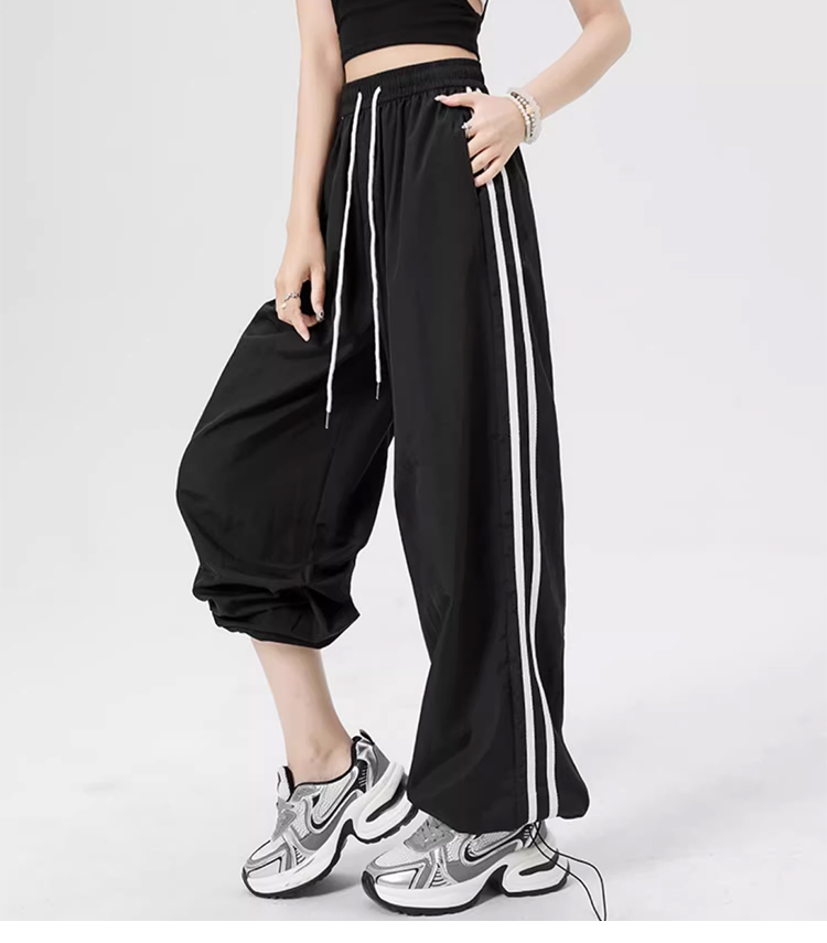 트레이닝 바지 여 와이드 와이드 하이웨스트 무 속바지 여름 미국 카고 바지